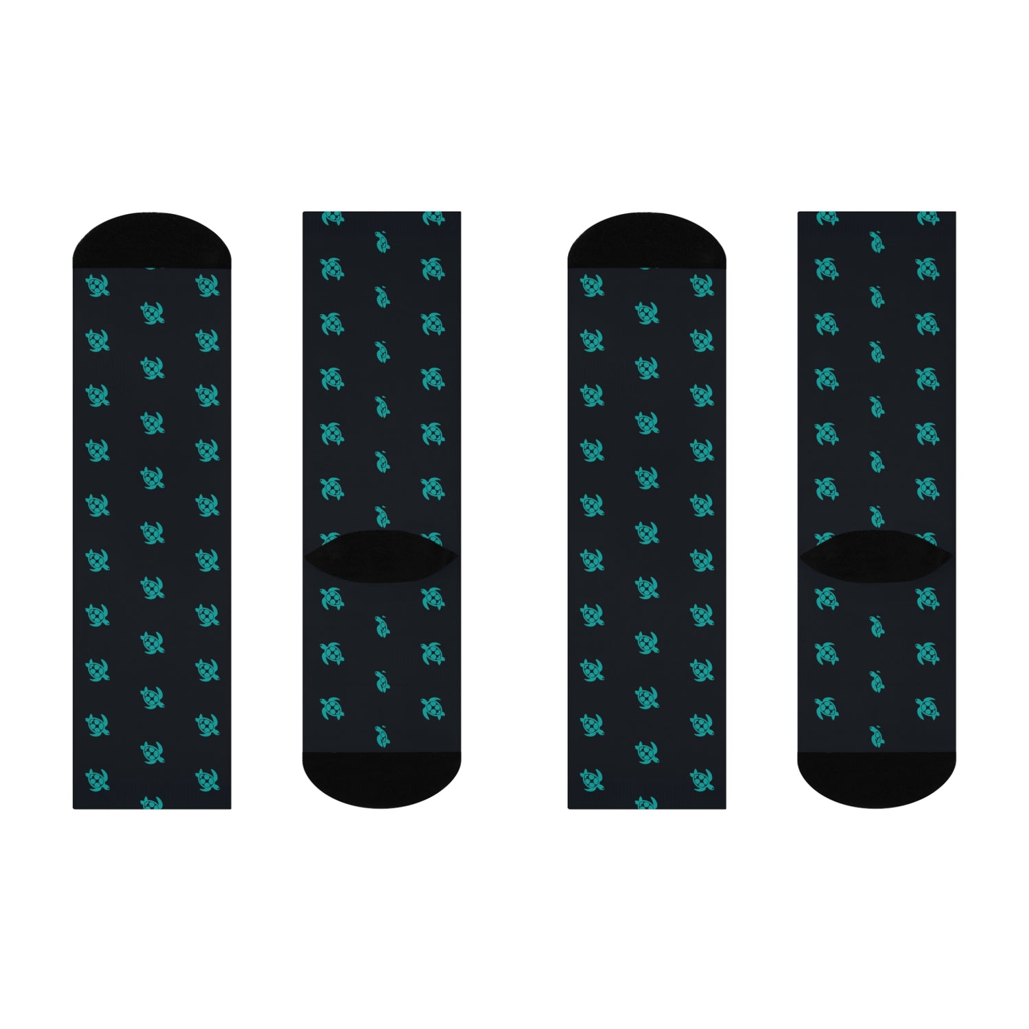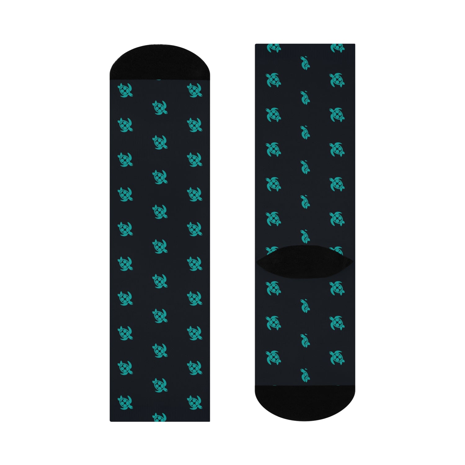 Navy and Teal Sea Turtle Cushioned Crew Socks