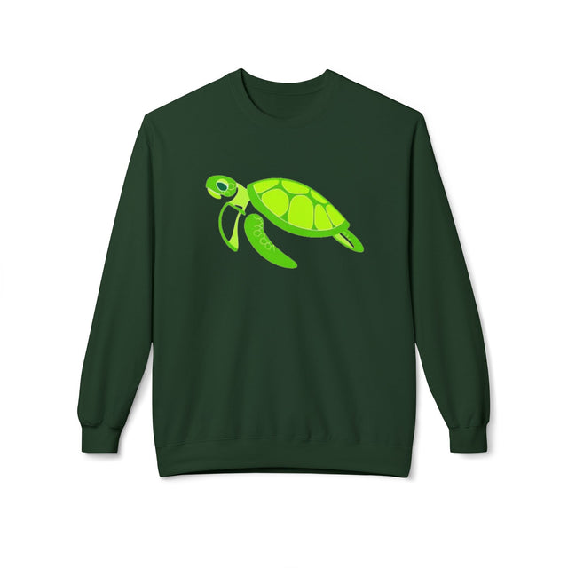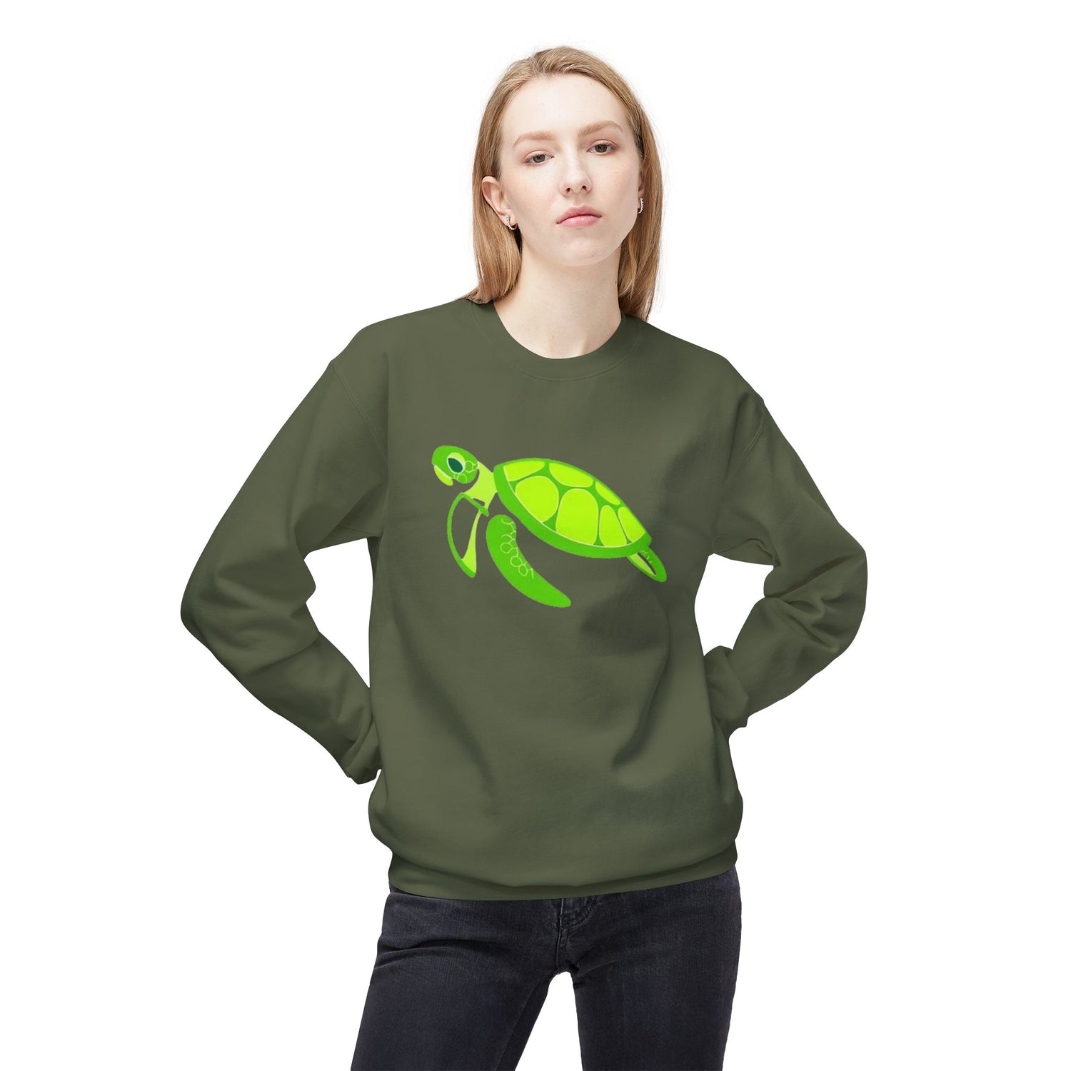 Neon Green Sea Turtle Sweatshirt, Eco-friendly Crewneck, Unisex Fleece Top, Perfect Gift for Nature Lovers, Casual Wear, Sustainable Fashion