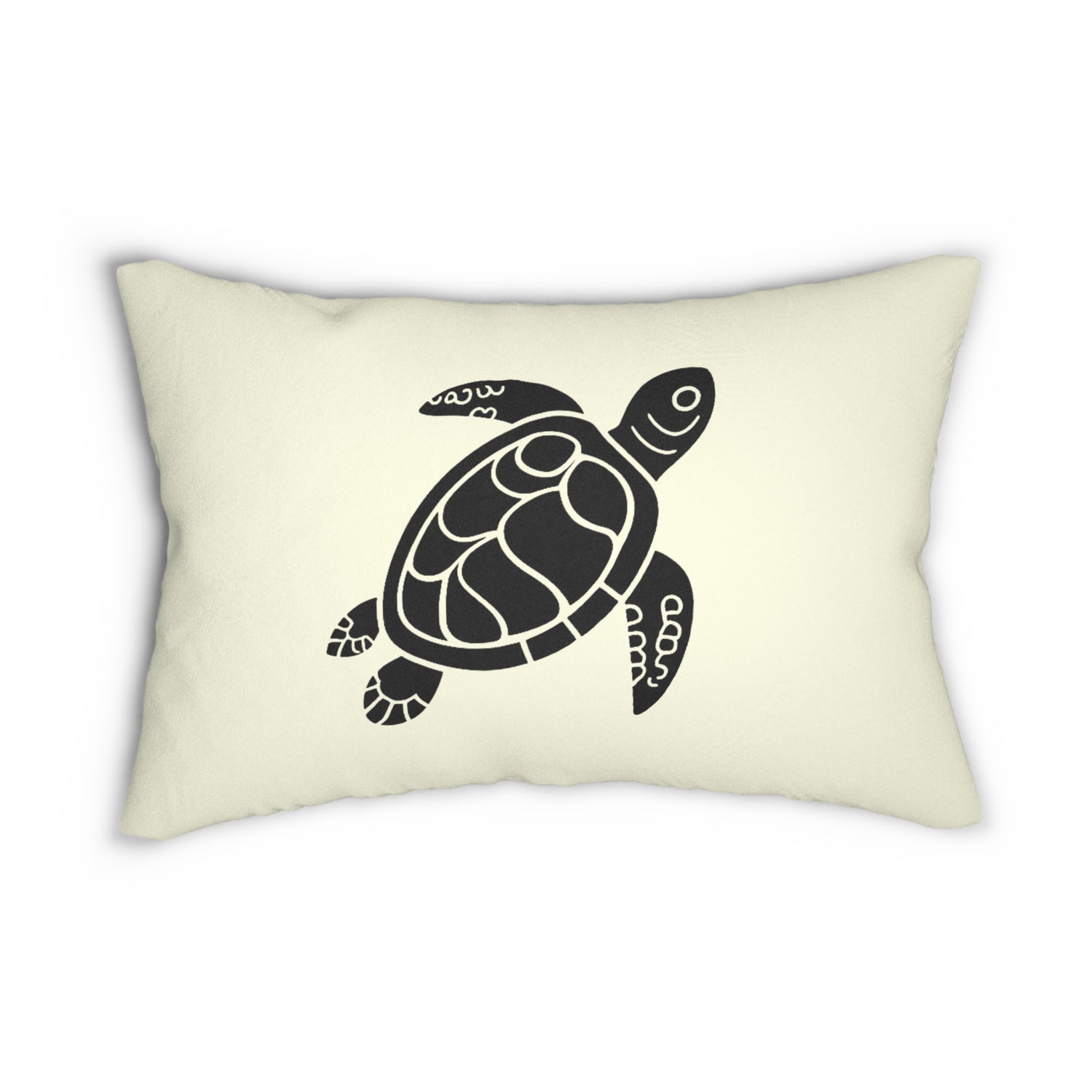 Off White Sea Turtle Lumbar Pillow, Nautical Home Decor, Beach House Accent Cushion, Gift for Beach Lovers, Turtle Design Throw Pillow