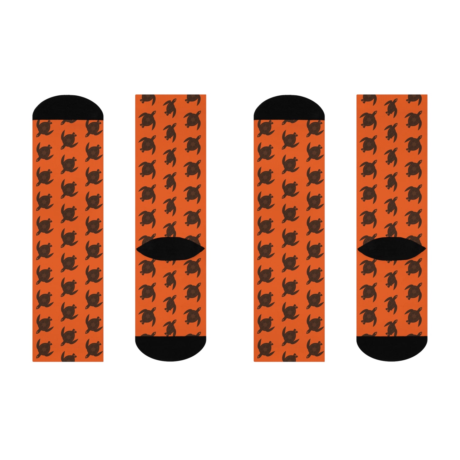Orange and Brown Sea Turtle Cushioned Crew Socks