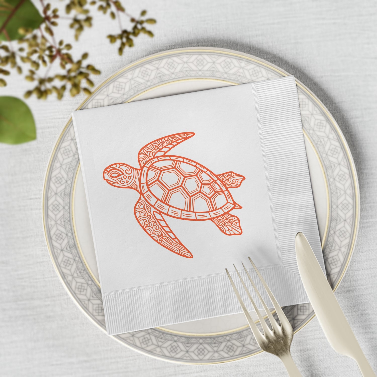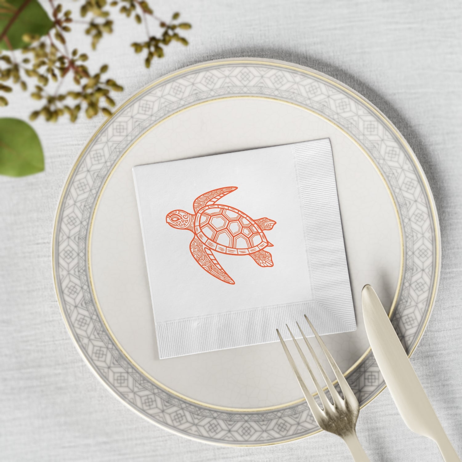 Orange Tropical SeaTurtle-Themed Cocktail Napkins, Party Decor, Wedding Reception, Beach Party, Eco-Friendly Tableware, Coastal Vibes