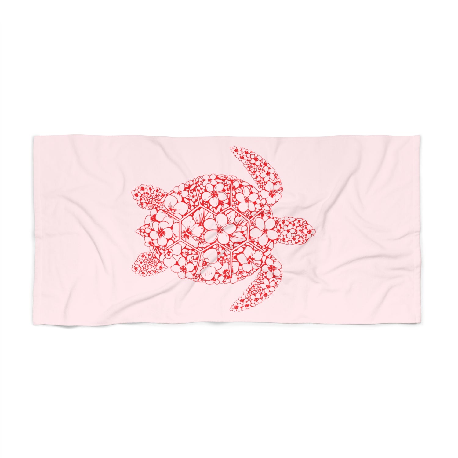 Red and Pink Tropical Sea Turtle Beach Towel - Vibrant Summer, Pool Party Accessory, Eco-Friendly, Perfect for Beach Days, Gift for Ocean Lovers