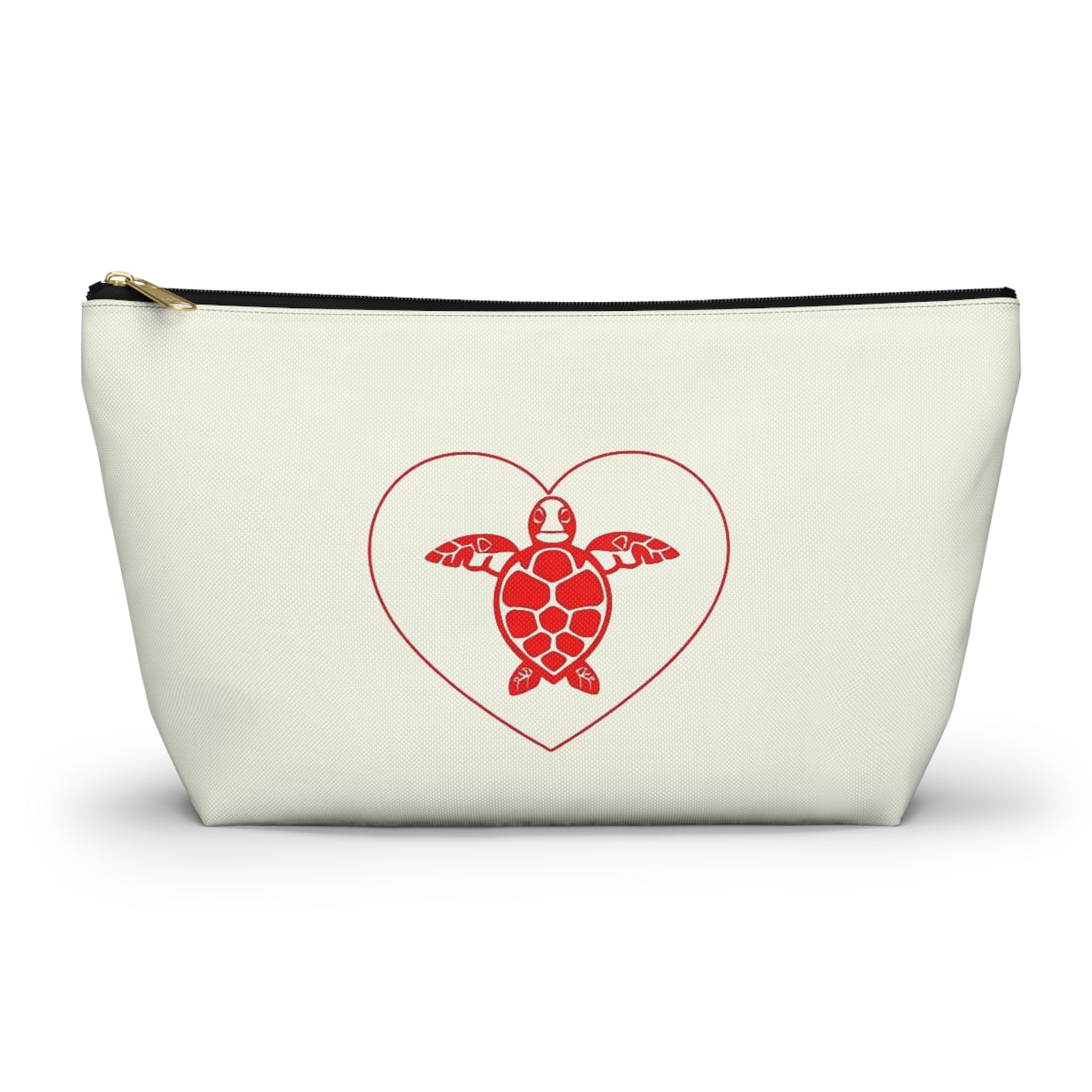 Red Heart Sea Turtle Print Accessory Pouch, Eco-Friendly Makeup Bag, Travel Organizer, Gift for Ocean Lovers, Cute Turtle Cosmetic Pouch