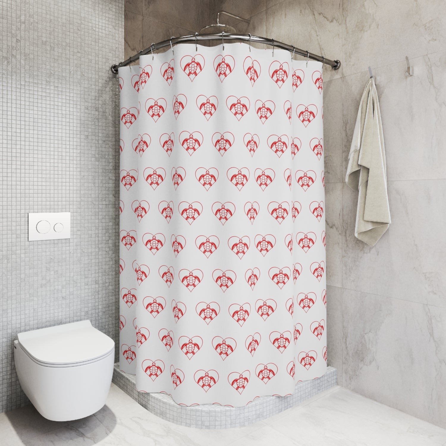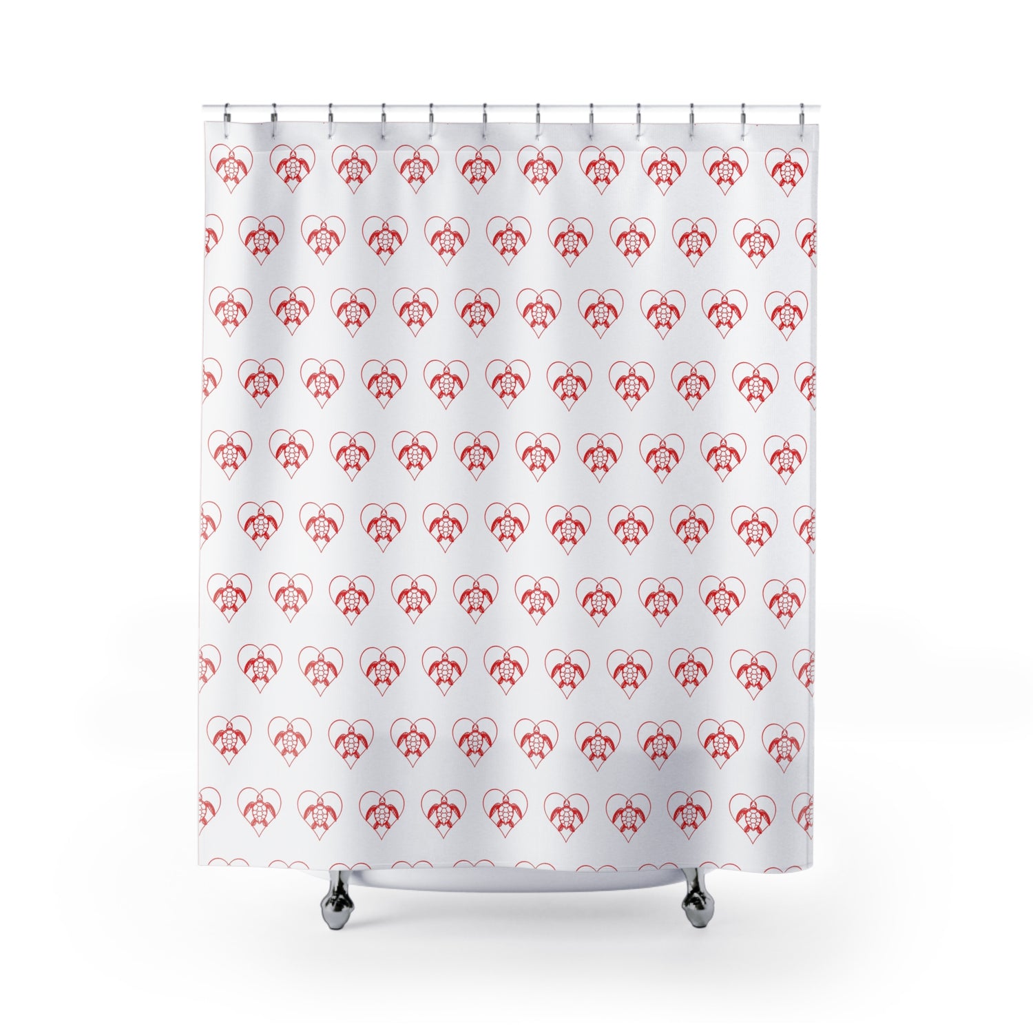 Red Heart Sea Turtle Shower Curtains, Coastal Bathroom Decor, Nature-Inspired Home, Ocean-Themed Gifts, Eco-Friendly Design
