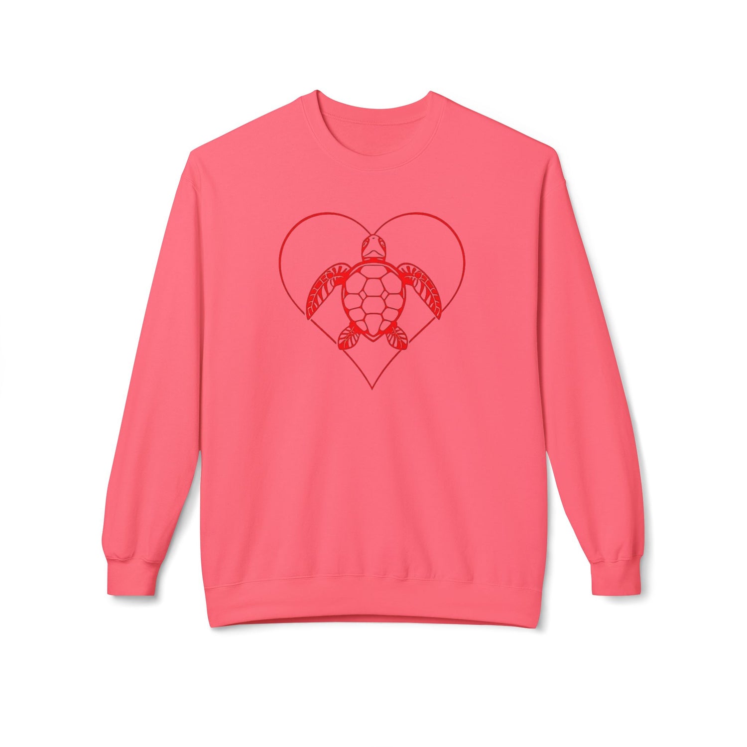 Red Heart Sea Turtle Sweatshirt - 6 colors Eco-friendly Crewneck, Unisex Fleece Top, Perfect Gift for Nature Lovers, Casual Wear, Sustainable Fashion