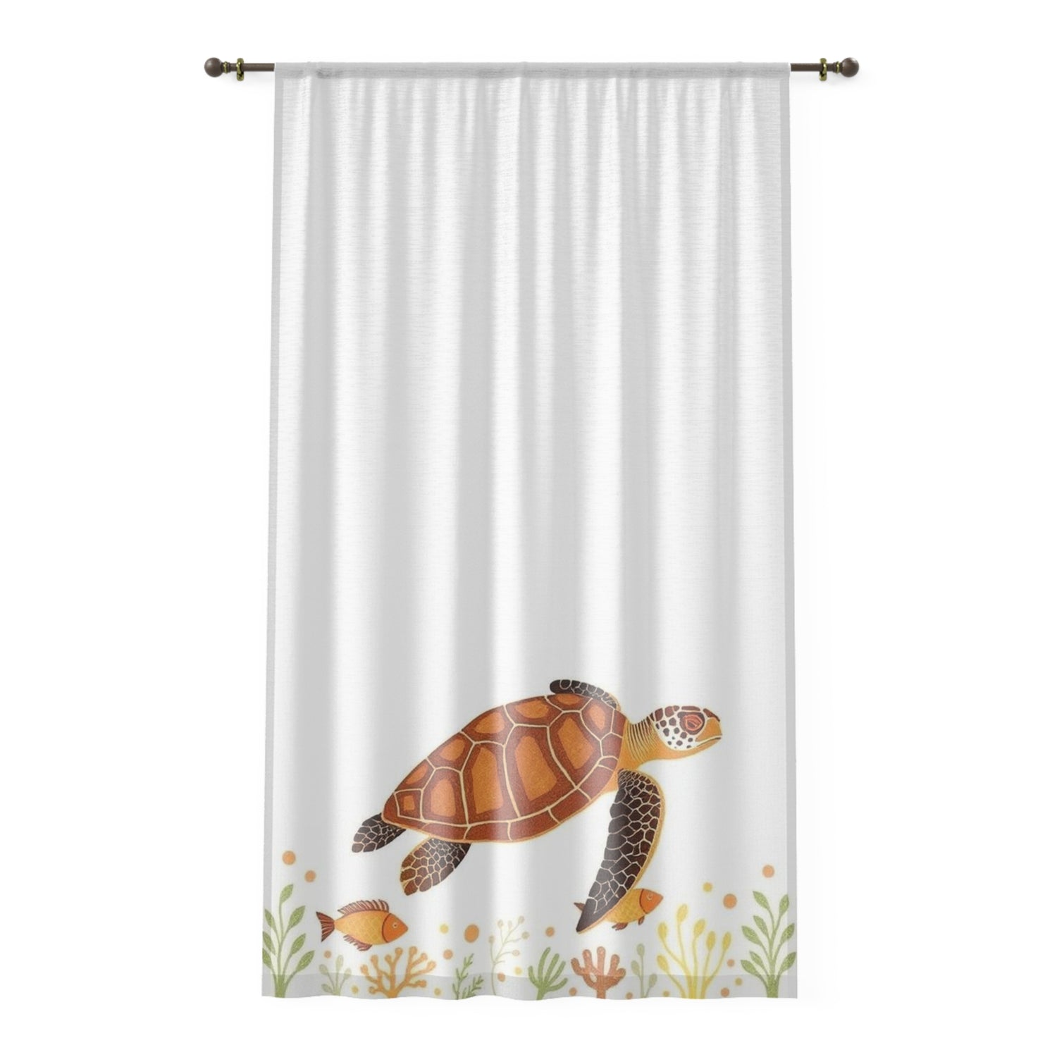Rustic Print Brown Sea Turtle Window Curtain, Beach Decor, Coastal Home, Ocean Vibes, Eco-Friendly Drapes, Summer Living