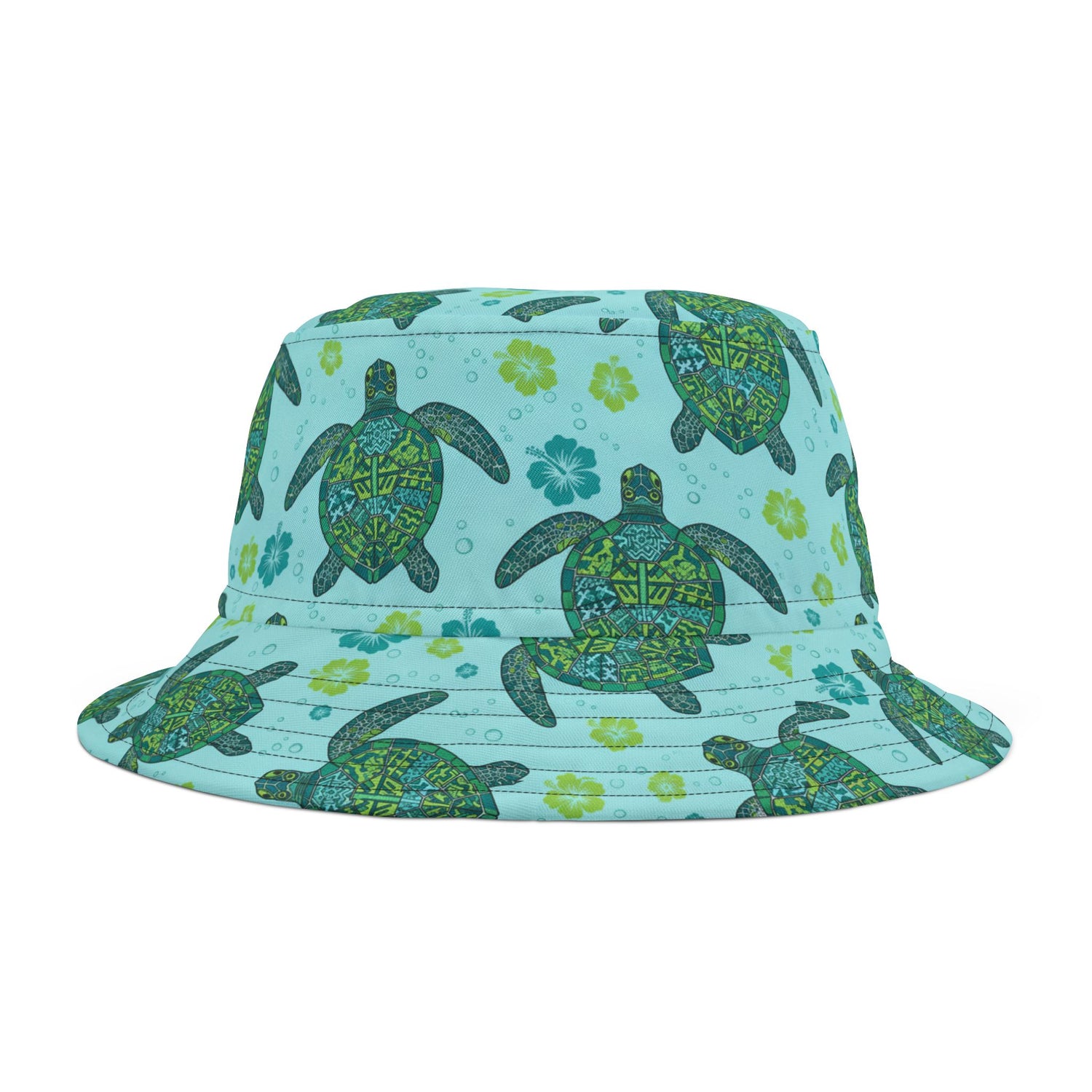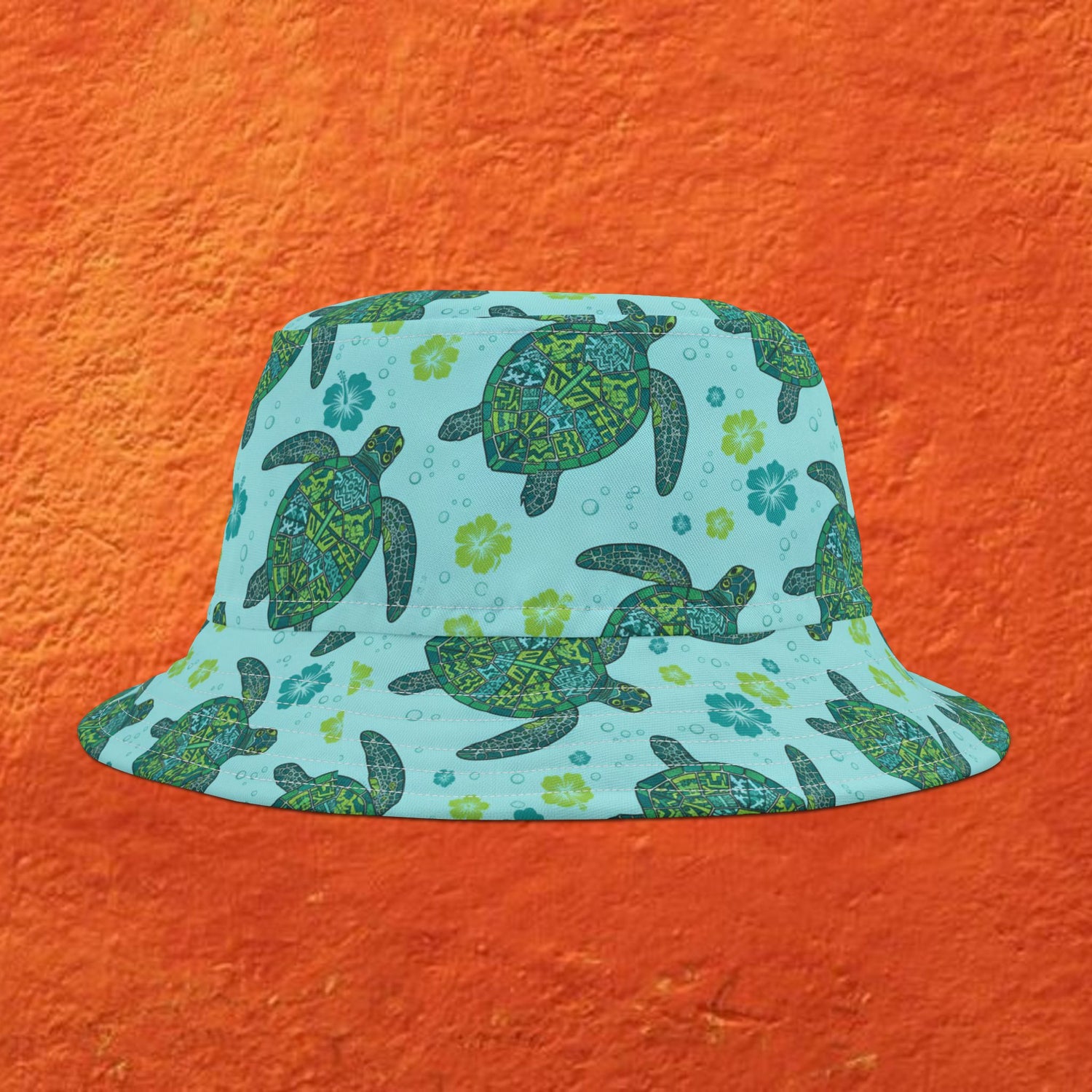 Sea Tones Island Print Sea Turtle Pattern Bucket Hats, Summer Accessory, Beachwear, Gift for Sea Turtle Fans - Large Sizes Available
