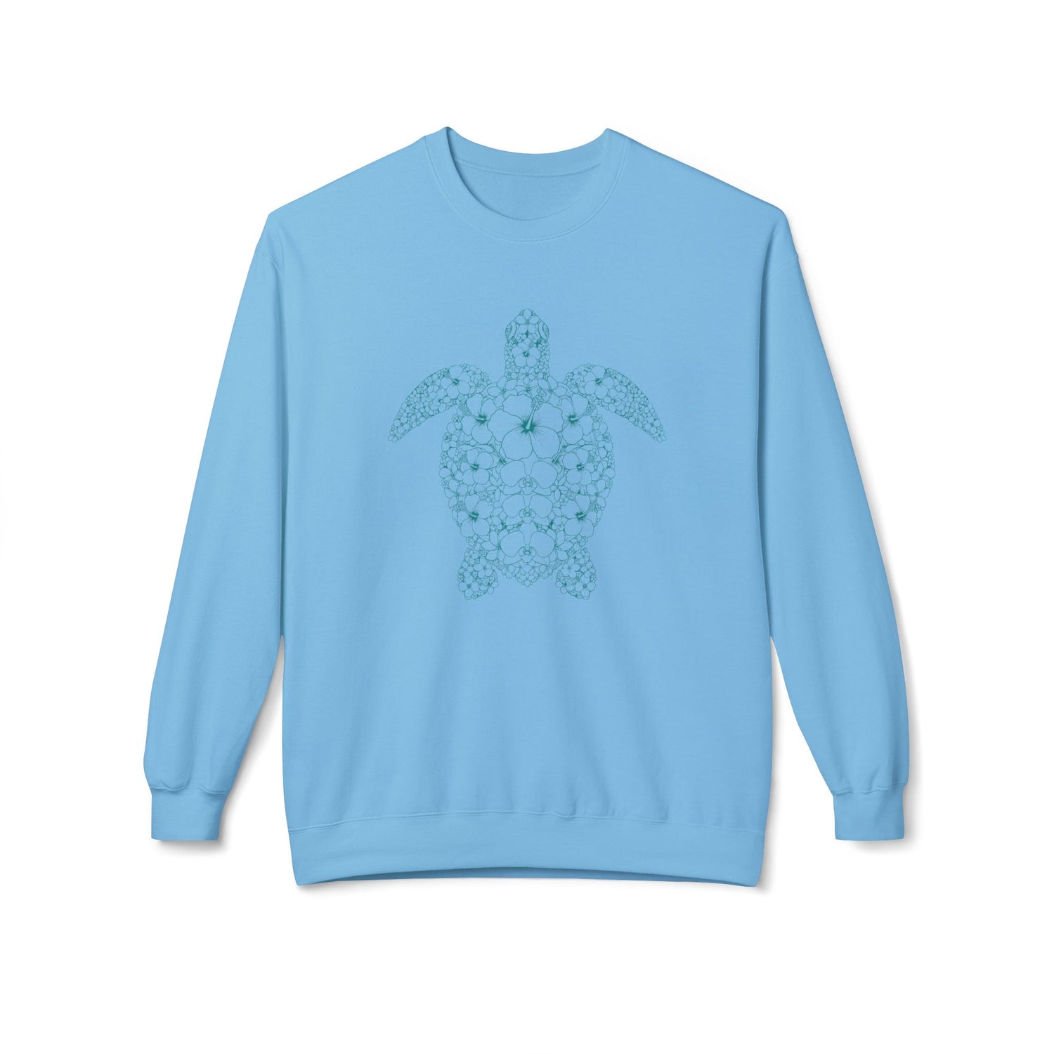 Teal Green Intricate Flowers and Sea Turtle Sweatshirt - 4 colors, Eco-friendly Crewneck, Unisex Fleece Top, Perfect Gift for Nature Lovers, Casual Wear, Sustainable Fashion