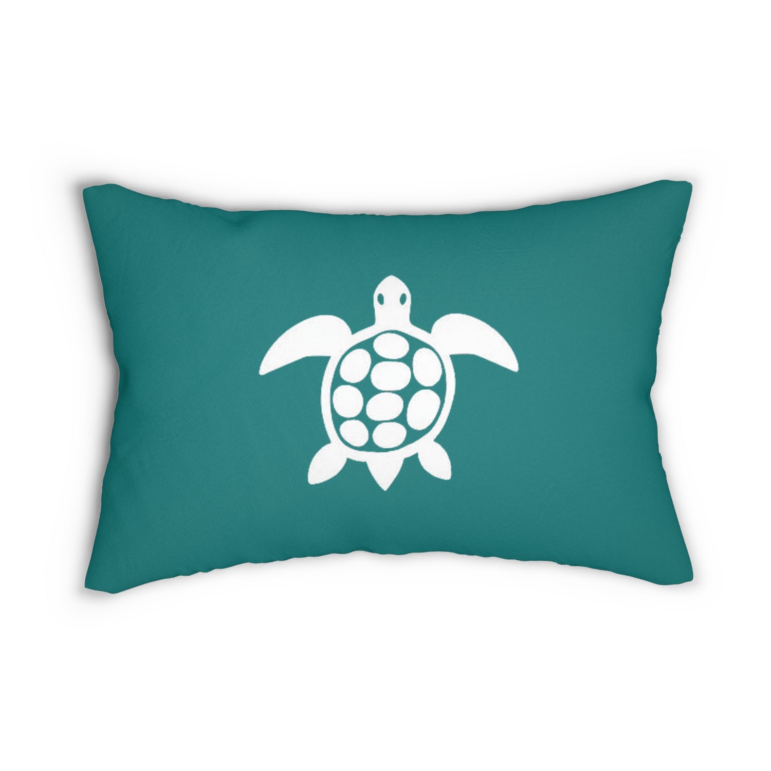 Teal Sea Turtle Lumbar Pillow, Nautical Home Decor, Beach House Accent Cushion, Gift for Beach Lovers, Turtle Design Throw Pillow