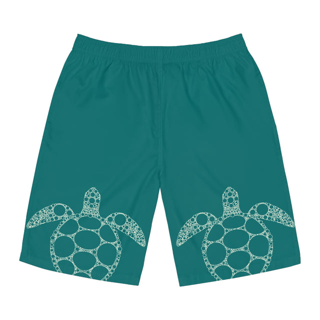 Teal Sea Turtle Print Men's Board Shorts, Beachwear, Swimwear, Summer Fashion, Beach Gifts, Casual Shorts