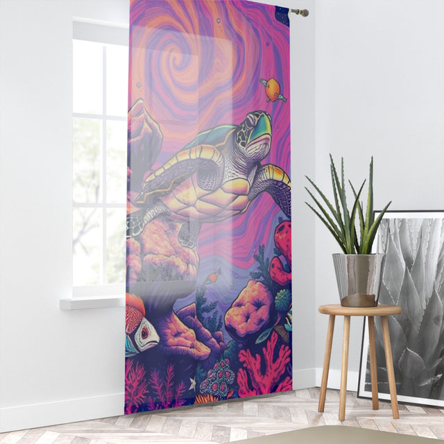 Trippy Space Sea Turtle Window Curtain, Beach Decor, Coastal Home, Ocean Vibes, Eco-Friendly Drapes, Summer Living