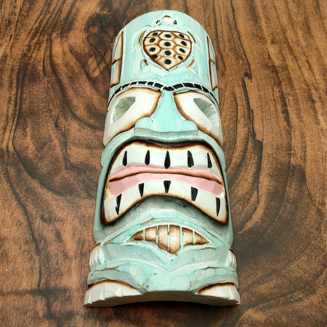 Online shoppers often search for: aqua tiki decoration, carved tiki mask, colorful tiki mask, decorative tiki, island wood mask, large painted mask, large tiki mask, painted mask, tiki decor, tiki mask tchotchke, turtle tiki mask, twelve inch tiki, wooden tiki mask
