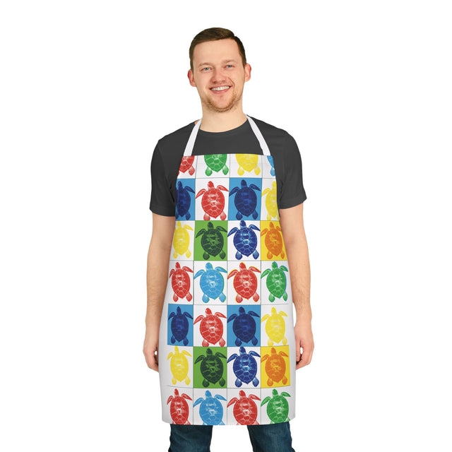 Vibrant Sea Turtle Apron, Colorful Kitchen Gift for Chefs, Artsy Cooking Attire, Fun Gift for Foodies, Unique BBQ Apron - One size / White is backordered and will ship as soon as it is back in stock.