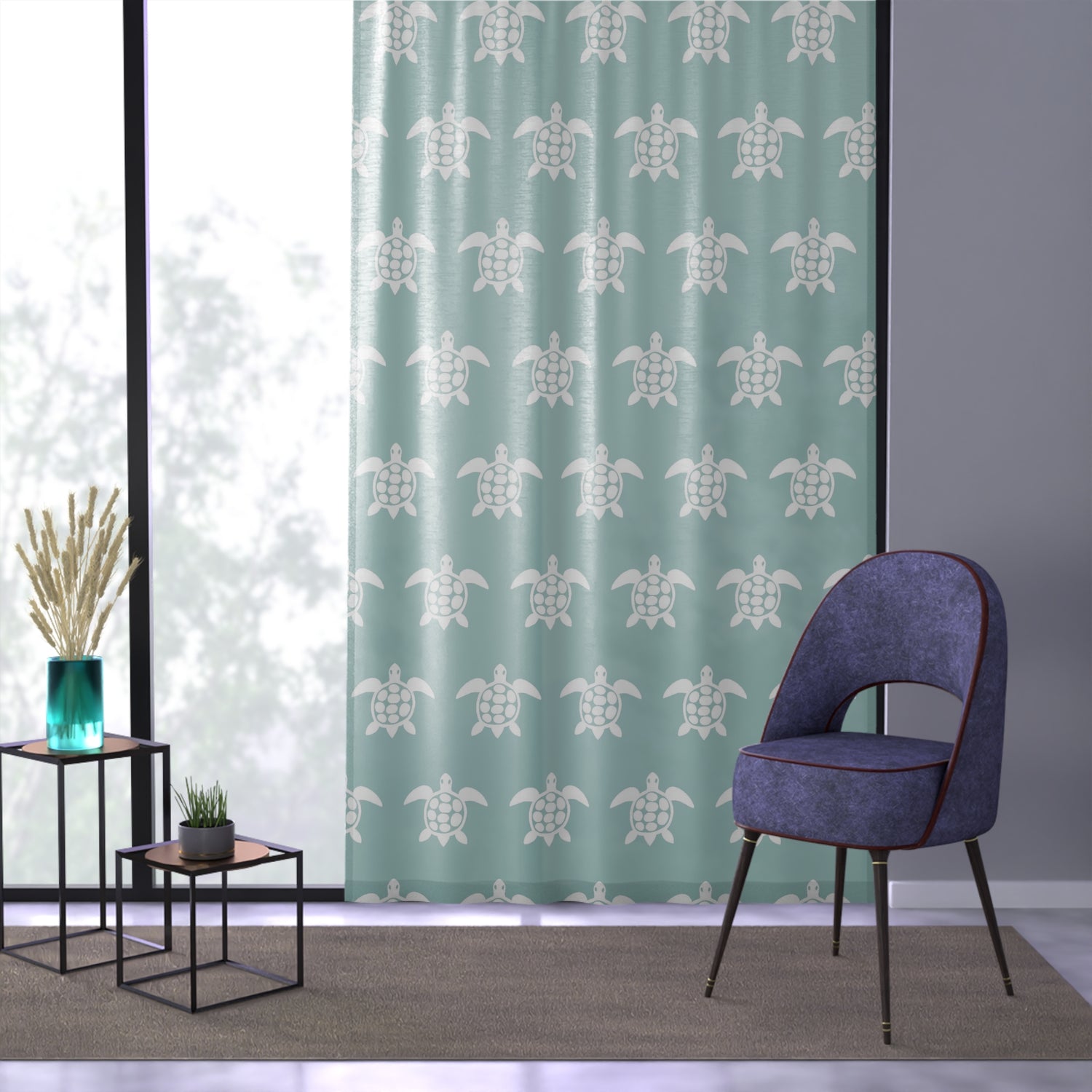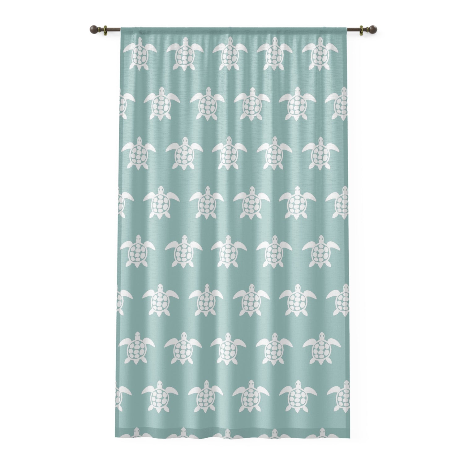 White and Blue Sea Turtle Tropical Pattern Window Curtain, Beach Decor, Coastal Home, Ocean Vibes, Eco-Friendly Drapes, Summer Living