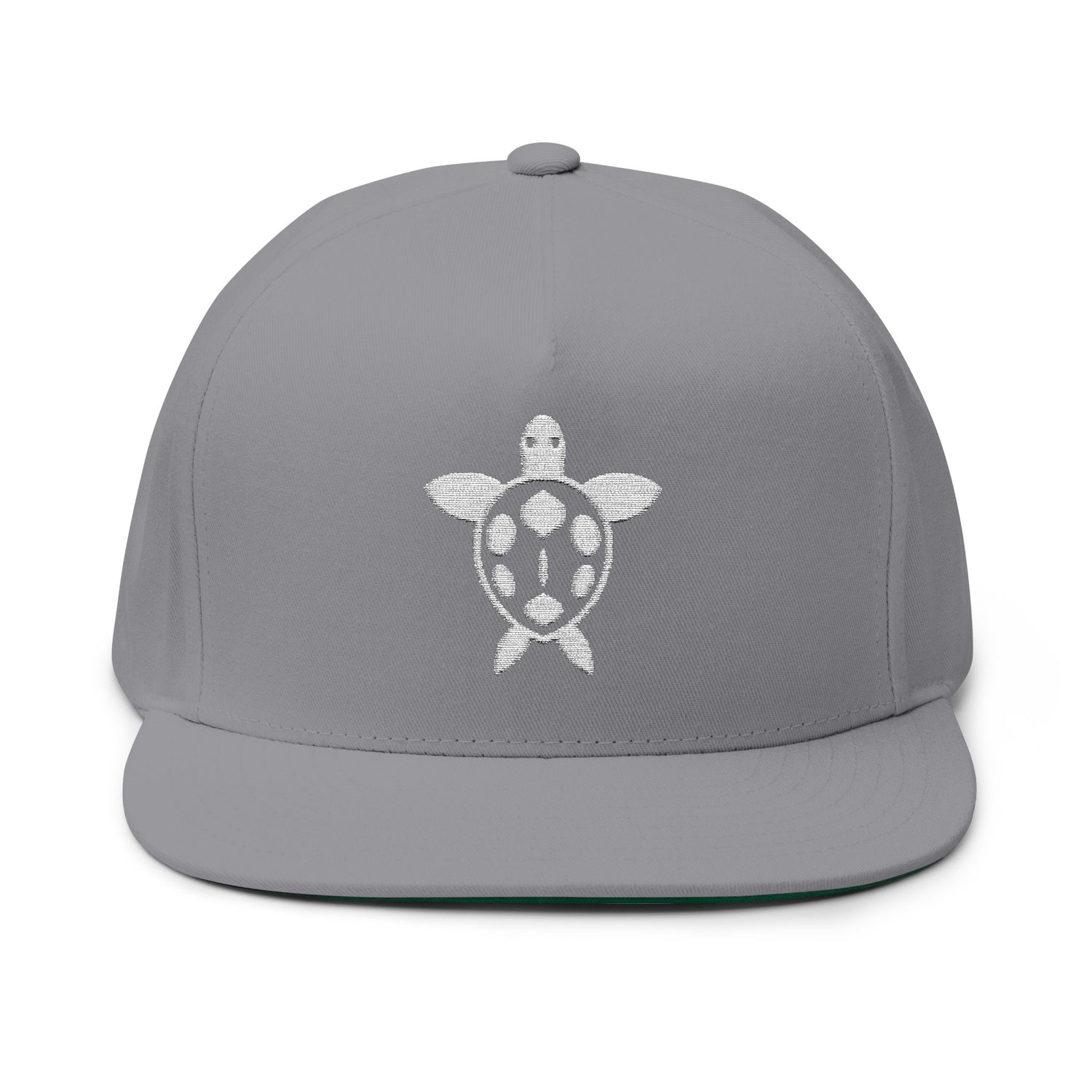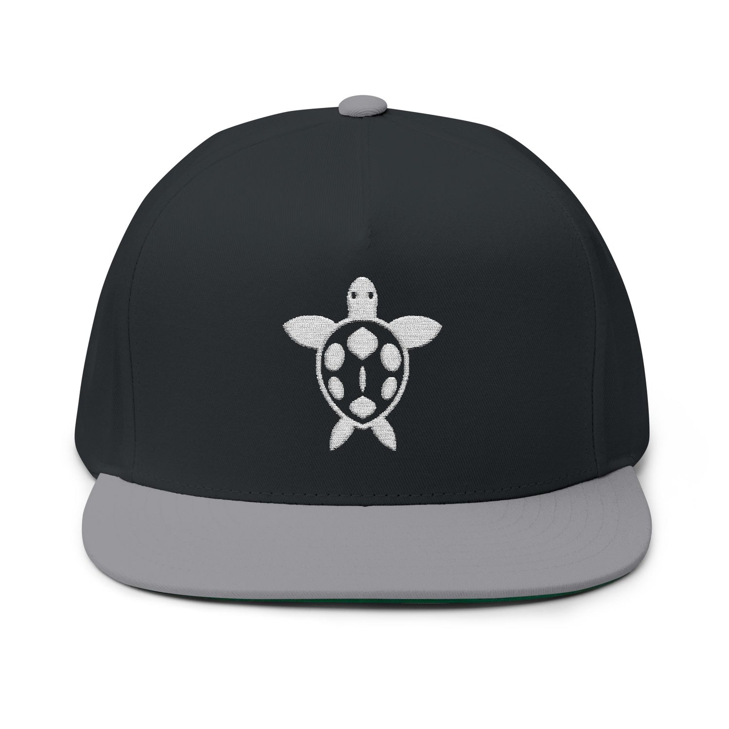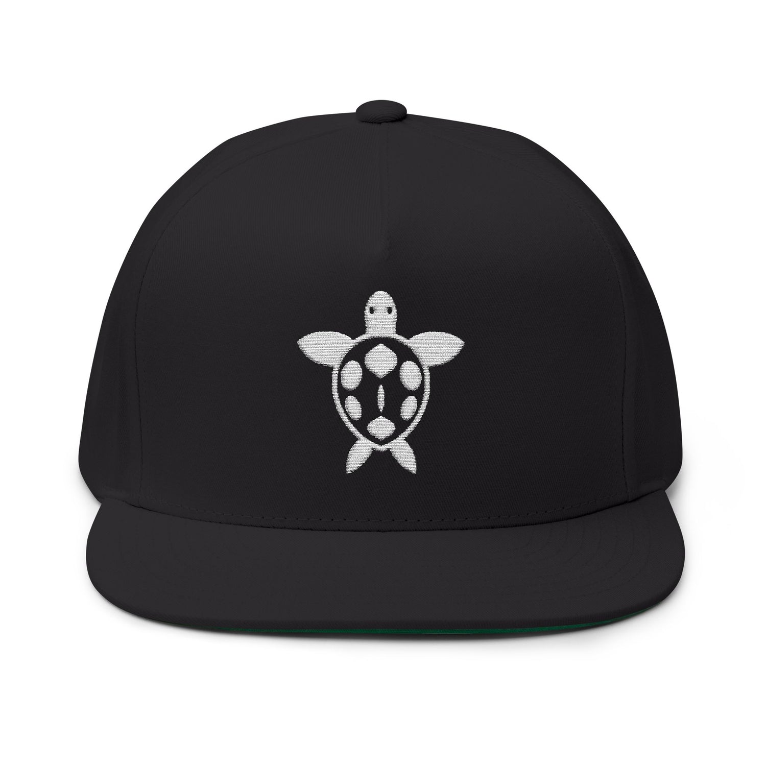 White Sea Turtle Embroidered Flat Bill Cap - One size / Black is backordered and will ship as soon as it is back in stock.