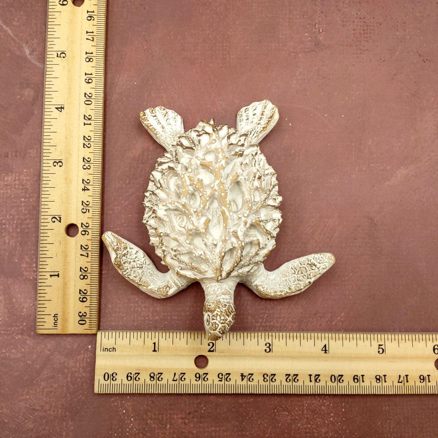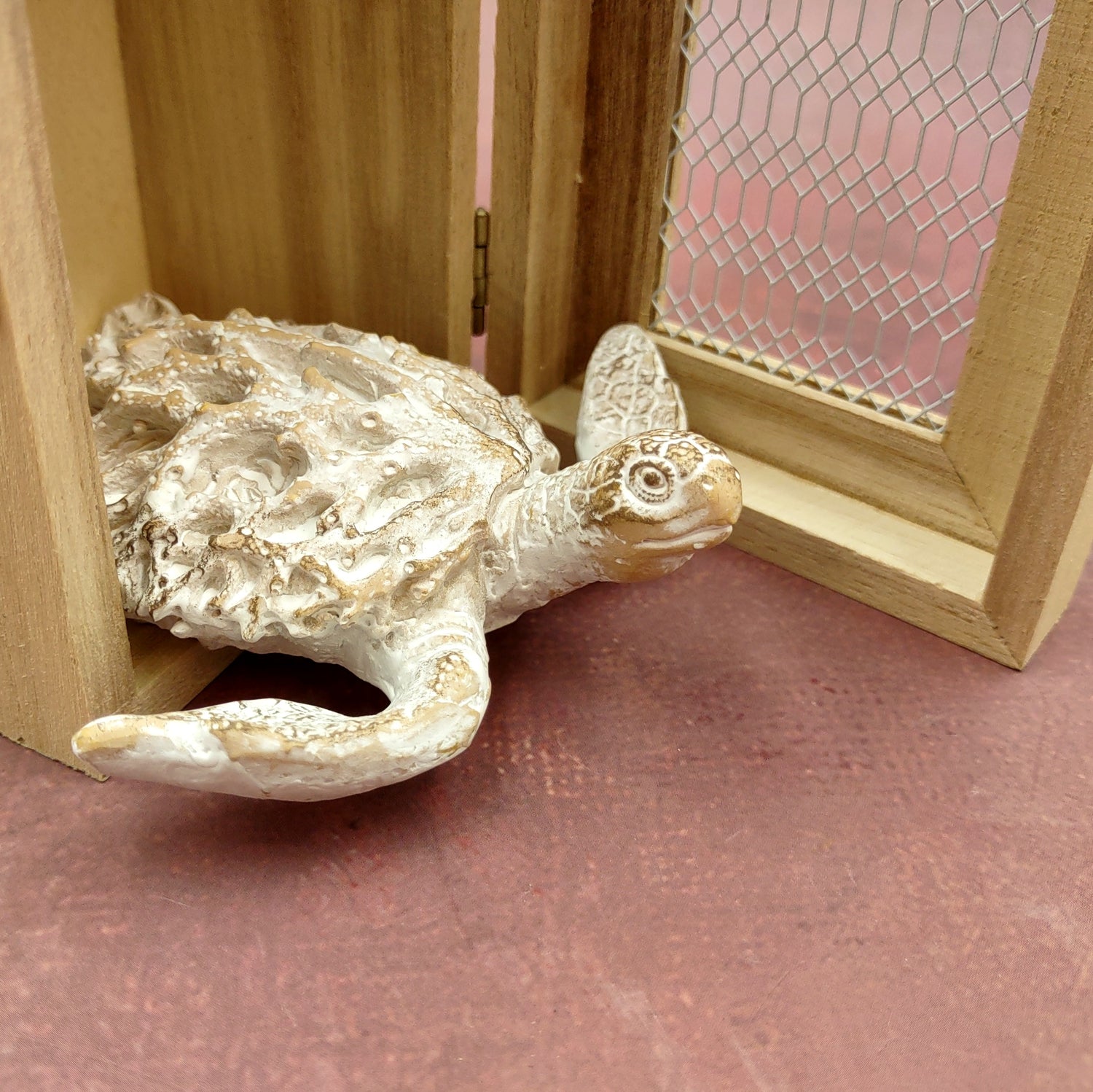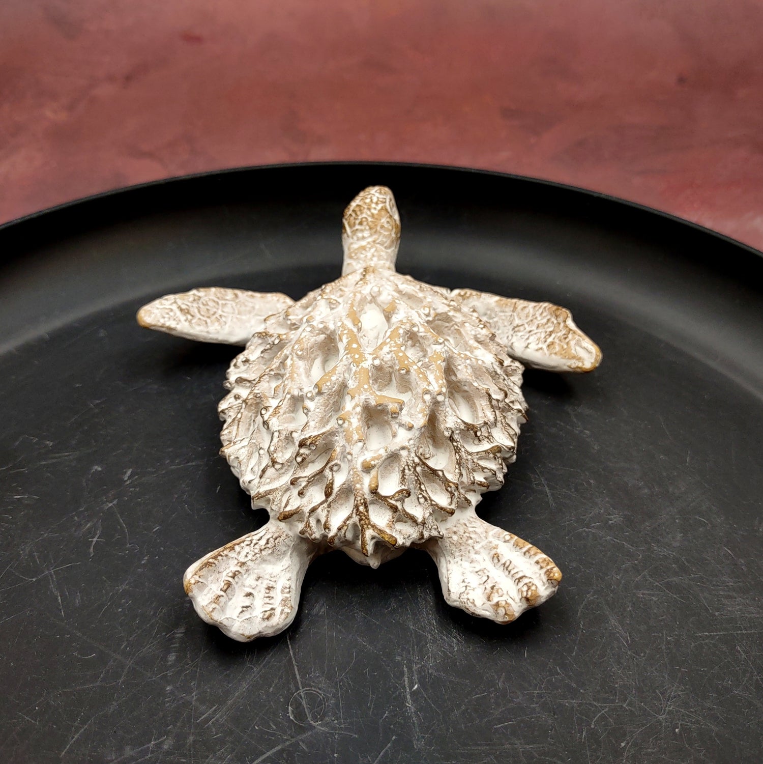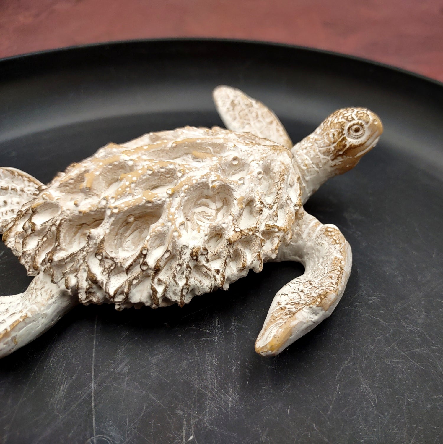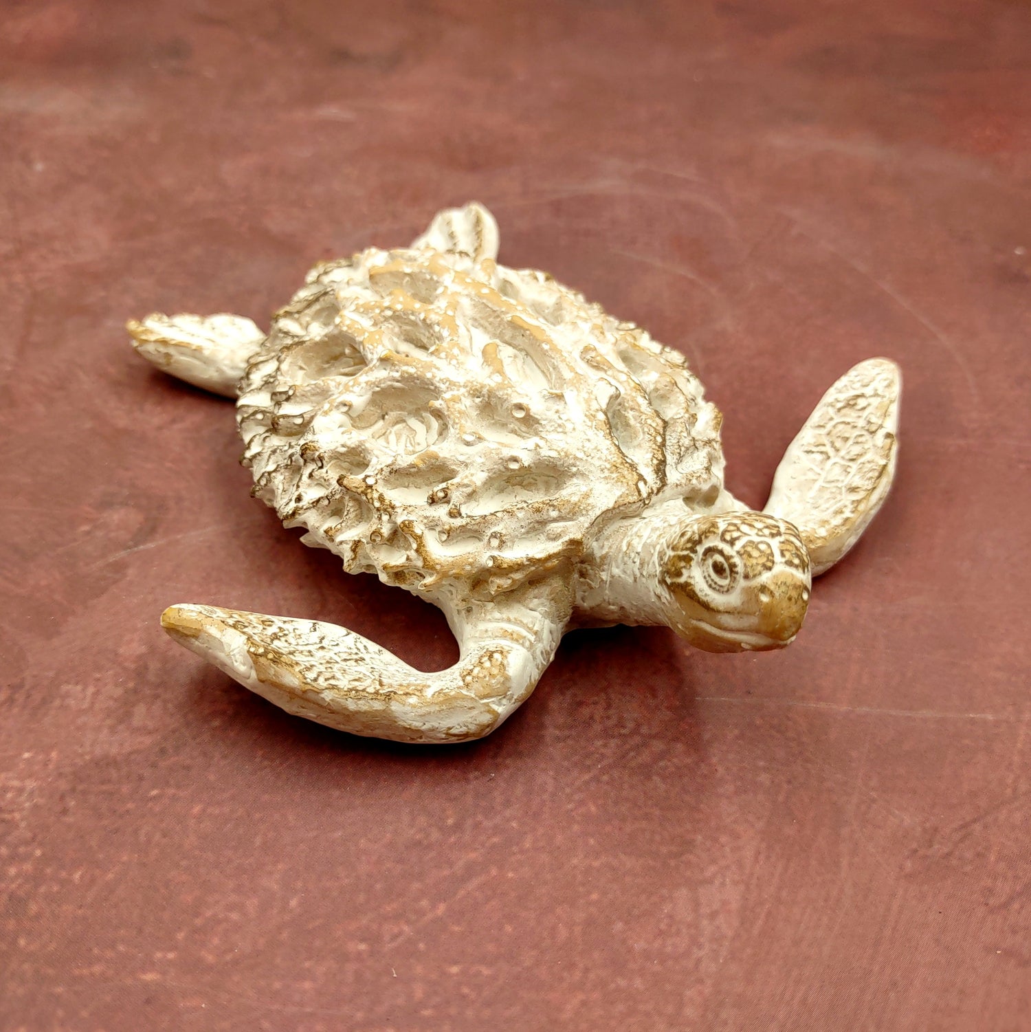 White Sea Turtle Tan Coral Shell Figurine (1 figure approx. 4+ inches) Rough White Tan Sea Turtle Statuette for decor gifts & collecting!