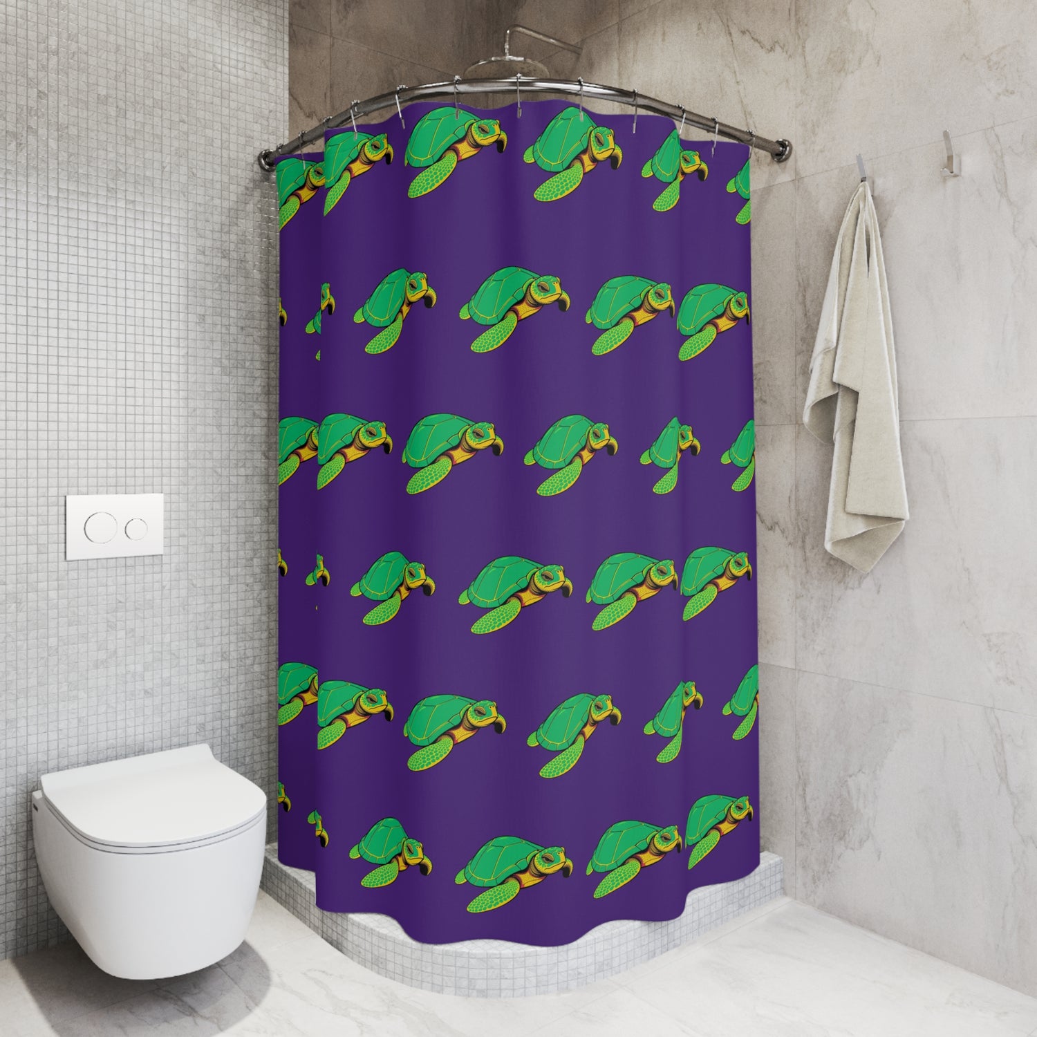 Wild Purple Sea Turtle Shower Curtains, Coastal Bathroom Decor, Nature-Inspired Home, Ocean-Themed Gifts, Eco-Friendly Design