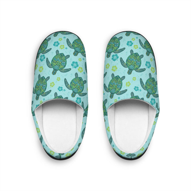 Womens Blue Tropical Sea Turtle Print Indoor Slippers, Cozy House Slippers, Cute Gifts for Her, Eco-Friendly Footwear, Relaxing Home Essentials